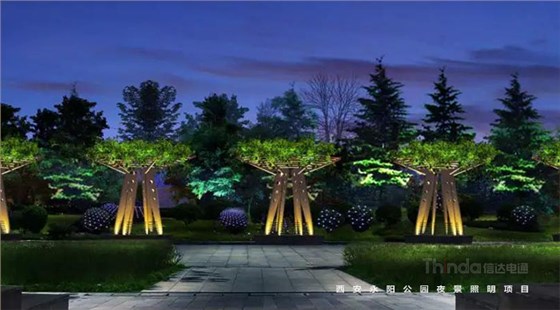 內(nèi)透照明:即枝葉間有較多空隙,且樹(shù)葉透明的植被,可將燈具放置于枝干的下部靠近或接近地面的位置,創(chuàng)造出枝葉發(fā)光的效果。