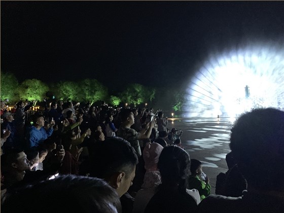 為確保首秀的效果,自6月25日起信達電通主創(chuàng)團隊多次夜間試演調(diào)試。現(xiàn)場吸引了眾多人潮和多方媒體的廣泛關注,守望都市、長春播報、新文化報等媒體相繼進行報道。信達電通設計總監(jiān)孫彥飛先生在試演現(xiàn)場接受采訪,向各大媒體解答水景秀的特色設計理念和技術實施問題。
