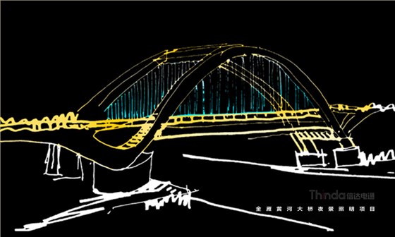 橋體整體為流暢的線條,我們在亮化設計中選用簡約光色勾勒橋體,用燈光來詮釋橋體的靈魂。光色上用黃色或者淡藍色,在照明時可以通過照明控制系統(tǒng)調(diào)試不同的展示效果,因為展示效果并不復雜,所以控制系統(tǒng)在功能的采用中選擇穩(wěn)定、控制效果單一的即可。