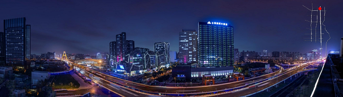 歐洲中心,是高新區科技產業核心區域,是城市級地標建筑群。總體區域夜景營造突出軟件園片區創新、未來的夜景氛圍,形成南區北向的重要城市門戶。