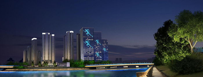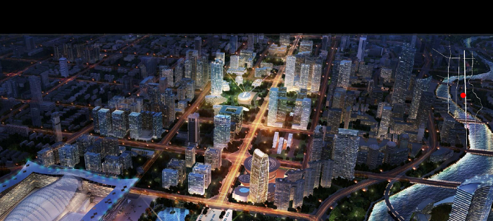 金融城,是高新區金融、政務中心,是高層商務、政務樓宇集中區域。在設計中以現代建筑形體靜態夜景展示為主,集中進行現代金融服務業形象表現,突出高新區活力創新的現代雙創金融新城形象。