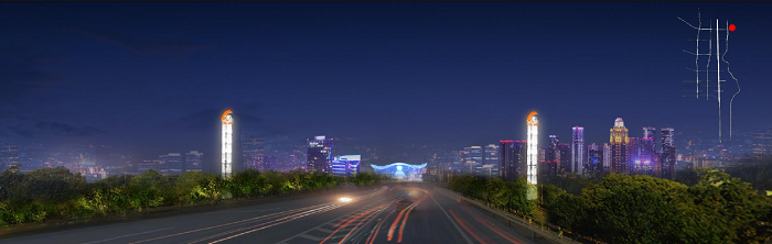 高新南區東門戶,以建筑群落和構筑物為夜景空間表現基礎,突出門戶區域的夜景標識。