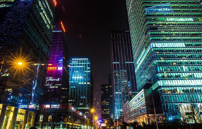 商務辦公區,單體設計應有重點,光的強弱和光色應與周圍環境及被照物在環境中的地位相協調。并掌握泛光照明的規模和強度、泛光照明的對象與周圍環境及觀賞范圍之間的尺度關系。