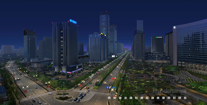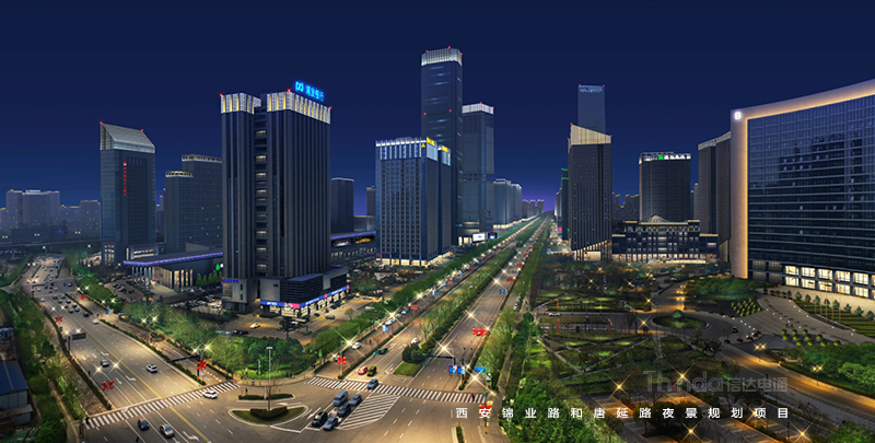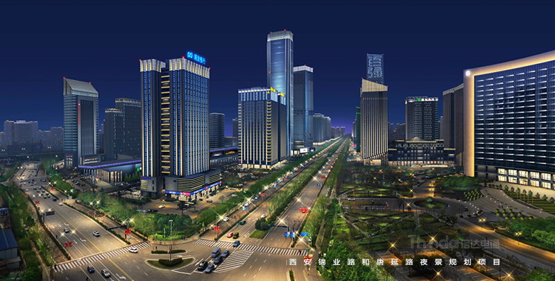 本項(xiàng)為西安高新區(qū)建筑景觀照明規(guī)劃設(shè)計(jì)中的一部分,地處于唐延路南與錦業(yè)路東交叉口,該視角可見(jiàn)建筑有都市之門、浦發(fā)銀行、綠地智海大廈、綠地筆克國(guó)際會(huì)展中心、陜西煤業(yè)化工集團(tuán)、領(lǐng)海大廈、中鐵航空港假日酒店等,是高新區(qū)錦業(yè)路南端的重要位置,當(dāng)車輛、行人抵達(dá)該位置時(shí),視角寬闊夜晚可視范圍大,夜幕下的燈光也就更為重要。