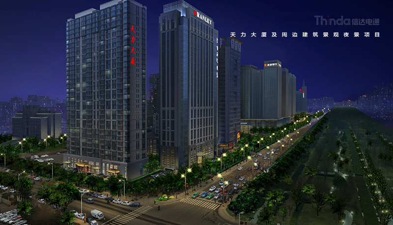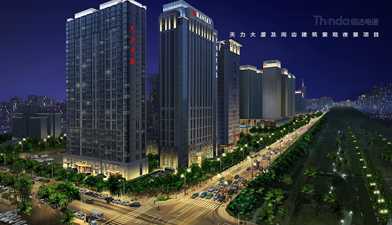 天力大廈坐落于西安高新區(qū)灃惠南路與科技四路的交匯處,人口聚集,交通便利。在設(shè)計(jì)方面,信達(dá)增加天力大廈建筑立面及頂部的照明,提升夜景照明的層次感,強(qiáng)調(diào)天際線效果,與西安高新區(qū)整體夜景氛圍保持一致,并且四種亮燈模式:節(jié)日模式、平日模式、節(jié)能模式、深夜模式,通過智慧控制充分滿足燈光需求。